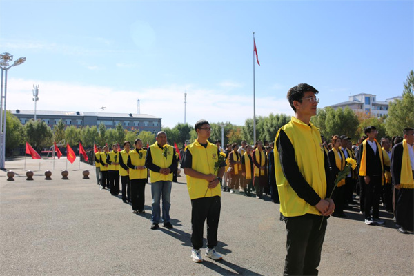 大庆市家文化研究会会长刘井龙、肇州县传统伦理道德研究协会会长兰秀华等嘉宾依次上前,与嘉宾代表、教师代表、志愿者代表及学生代表敬献鲜花。层层献礼,仪式庄严,表达了后世对先师的无限崇敬与追思。
