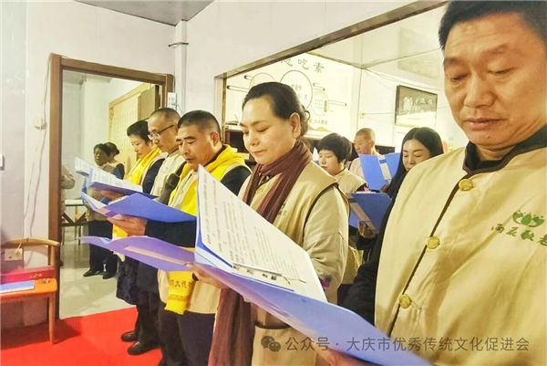 大庆市优秀传统文化促进会副会长牛忠义先生偕大庆14家雨花家长、店长集体诵读《连根养根词》,共同立志: