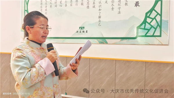 大庆市优秀传统文化促进会副会长牛忠义在致辞中说:“老吾老以及人之老”,这句古训承载着中华民族最深沉的道德底蕴与人文关怀。大庆市优秀传统文化促进会始终以传承弘扬优秀传统文化为使命,并致力于将其精髓融入当代生活,服务社会民生。“雨花敬老家园”正是我们精心孵化、着力推广的公益品牌项目。它不仅仅是一个提供餐食的场所,更是一个以“互助、感恩、尊重、奉献”为核心精神,凝聚社区力量、传递邻里温情、践行孝亲敬老的公益平台。