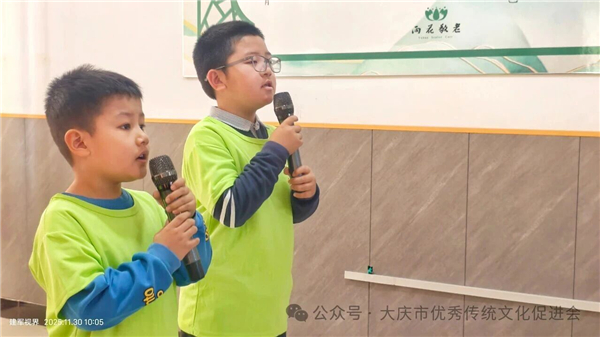 姚俊同、侯宣廷同学朗诵《雨花家训》、《少年中国说》。