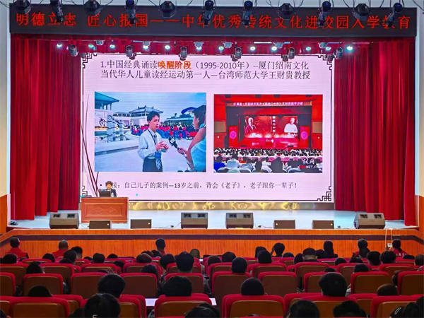 8月21日至8月23日,大庆市优秀传统文化促进会2024年“明德立志匠心报国”传统文化进校园活动在黑龙江省水利学校报告厅举行。300多名新生、100多位老师及40多名传统文化志愿者参加了三天的培训。