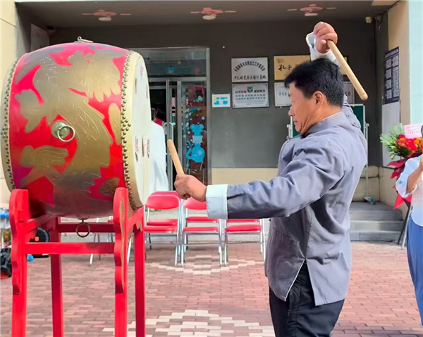 阚天光老师指导孩子们击鼓明志。咚咚咚!击鼓三声。孩子们依次上前,擂响大鼓,大声喊出自己的志向:立圣贤志,做圣贤人!