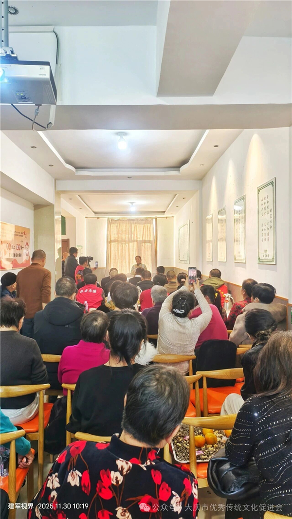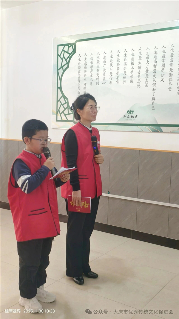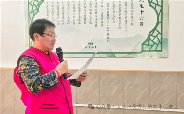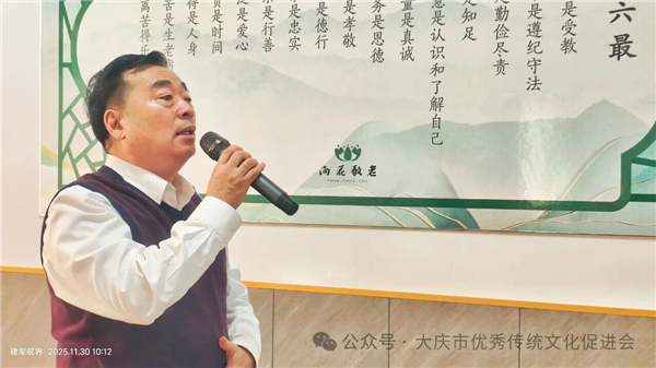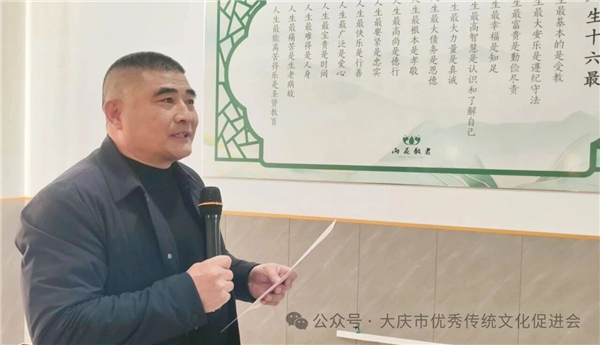 大庆市优秀传统文化促进会副会长牛忠义在致辞中说:“老吾老以及人之老”,这句古训承载着中华民族最深沉的道德底蕴与人文关怀。大庆市优秀传统文化促进会始终以传承弘扬优秀传统文化为使命,并致力于将其精髓融入当代生活,服务社会民生。“雨花敬老家园”正是我们精心孵化、着力推广的公益品牌项目。它不仅仅是一个提供餐食的场所,更是一个以“互助、感恩、尊重、奉献”为核心精神,凝聚社区力量、传递邻里温情、践行孝亲敬老的公益平台。