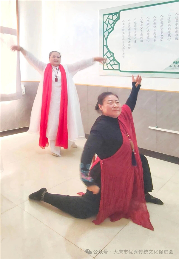 肇州雨花发起人兰秀华等表演中华炁舞《爱的路上》。
